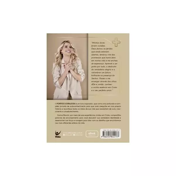 Este livro é um convite tanto ao entendimento mais profundo acerca de si mesma como a respeito do Pai celestial. Nestas páginas, você será instigada a enfrentar a jornada da vida com mais fé e determinação por meio do conhecimento da Palavra e intimidade com o Criador. Compartilho a minha história, minhas orações, passagens bíblicas edificantes e atividades interativas que a ajudarão a descobrir mais sobre as promessas de Deus e a se tornar ainda + Forte e Corajosa à luz das Escrituras.” KARINA BACCHI